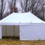 Wij hebben de landsknecht riddertent in de afmetingen: 6 x 9 meter, 4 x 4 meter en 3 x 3 meter